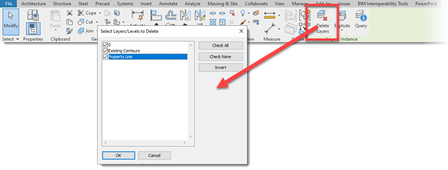 - 如果您认为有必要导入DWG,例如,如果您要将其转换为Revit细节,删除它在这之后。导入dwg会带来非本地Revit几何。此外,DWG并不是最稳定的文件格式。您可能会引入一个损坏的CAD文件,因此删除所有层以摆脱它。