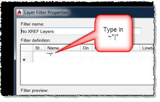 您注意到,当您将光标移动到一个对象上时,它开始延迟。您已经启用/禁用了硬件加速,但延迟仍然存在。如果你在画中有xref,那可能就是你的罪魁祸首。为了克服这个问题,尝试创建一个层过滤器,排除所有的xref层。使用名称过滤器~*|*,如下所示: