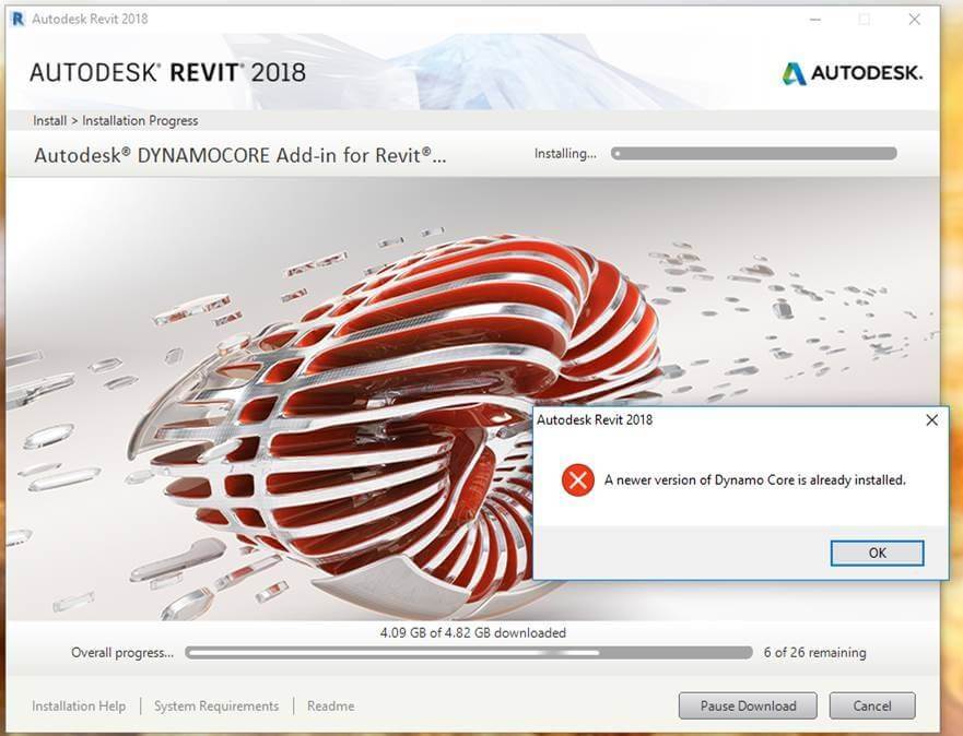 对于那些安装了2017软件最新更新的人,特别是Dynamo Revit或Dynamo Studio,在尝试安装Revit 2018时可能会遇到上面列出的错误。