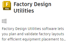 这将列出允许您安装的所有软件。要使用FDU的最小好处启动和运行,您应该从安装Inventor Professional和AutoCAD Mechanical开始。为了充分利用FDU,你应该安装Navisworks Manage和ReCap Pro。Navisworks允许您在冲突检测的同时对设施布局进行行走和飞行,ReCap是点云软件。安装此软件后,您将需要安装Factory Design Utilities,它将为上面提到的每个选项添加功能。在软件列表中,你会看到Factory Design Utilities,它看起来是这样的: