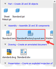 此外,Inventor在创建一个名为“StandardFactoryLayout”的工厂布局时将有一个新模板使用。当你选择New时,它会像这样:
