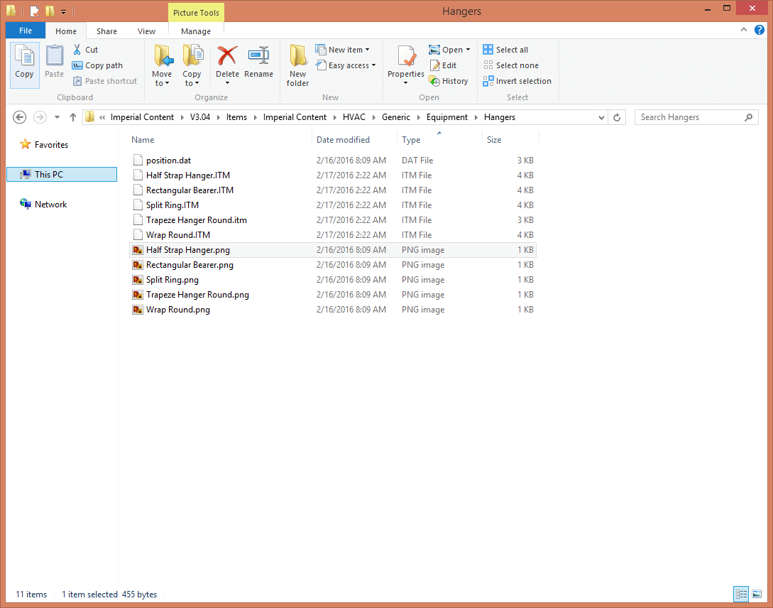 接下来是ITM内容部件的示例路径。(C:\Users\Public\Documents\Autodesk\Fabrication 2017\Imperial Content\V3.04\Items\Imperial Content\* - *)