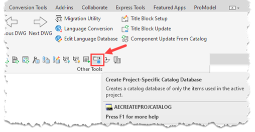- b.打开一个包含所有所需目录信息的现有项目,并在项目选项卡上使用“创建特定于项目的目录数据库”工具。该工具从项目中提取所有目录数据。运行此工具后,将创建的数据库从项目文件夹位置移动到共享内容文件夹位置。命名选项可以是“Secondary_cat.mdb”。将其放置在默认目录所在的位置。