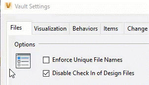 确保选择了“禁用设计文件签入”。这可以防止用户将CAD文件拖放到Vault中。要将新文件签入Vault并确保上传所有数据,可以为客户端应用程序使用Vault外接程序。方法将文件添加到Vault中Inventor Vault插件