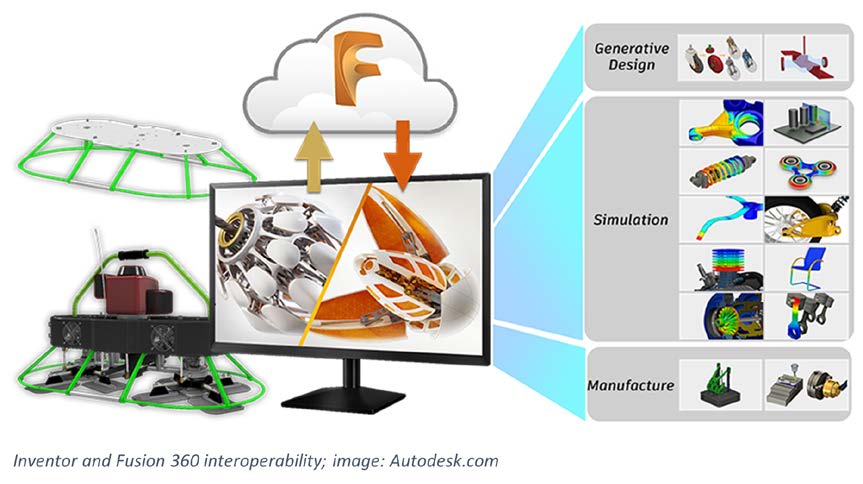 - Fusion 360的发明者:当使用Fusion 360工具时,您可以选择为您选择的命令启动Fusion 360工作空间。建模命令(以前发送到融合)带您到融合360设计工作空间。新的命令为Fusion 360额外的工作空间提供了工作流程:生成设计、仿真和制造。选择想要使用的Fusion 360工具和想要发送到Fusion 360的组件。Inventor组件派生为单个IPT,复制到Fusion Team,并在Fusion 360中适当的工作空间中打开。